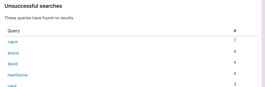 Is the content there but hard to find? If the page already exists, users may simply be using a different word for it. Adding synonyms can often solve this. Search data is one of the fastest ways to understand how users think about your content.